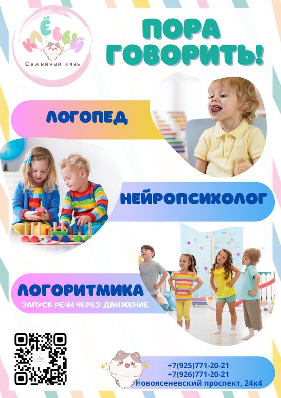 Здесь нежно развивают интеллект детей и готовят их к самостоятельной жизни в современной информационной эпохе. Педагоги не просто занимаются подготовкой к детскому саду и школе, обучая различным навыкам и техникам коммуникации. Именно после таких занятий дети начинают осознавать себя как самостоятельные личности и уже в раннем возрасте начинают понимать, чем хотят заниматься в жизни. Не стоит экономить на времени и развитии ваших детей, они - это ваше будущее. Семейный детский клуб Клëвый представляет собой проверенное место, где готовы развивать способности ваших детей, обучать их навыкам коммуникаций, показывать пример искренней дружбы, а также учить их не бояться всех трудностей, которые могут встретиться в жизни.